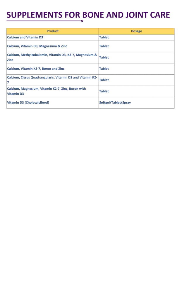 • Supplements for Bone and Joint Care